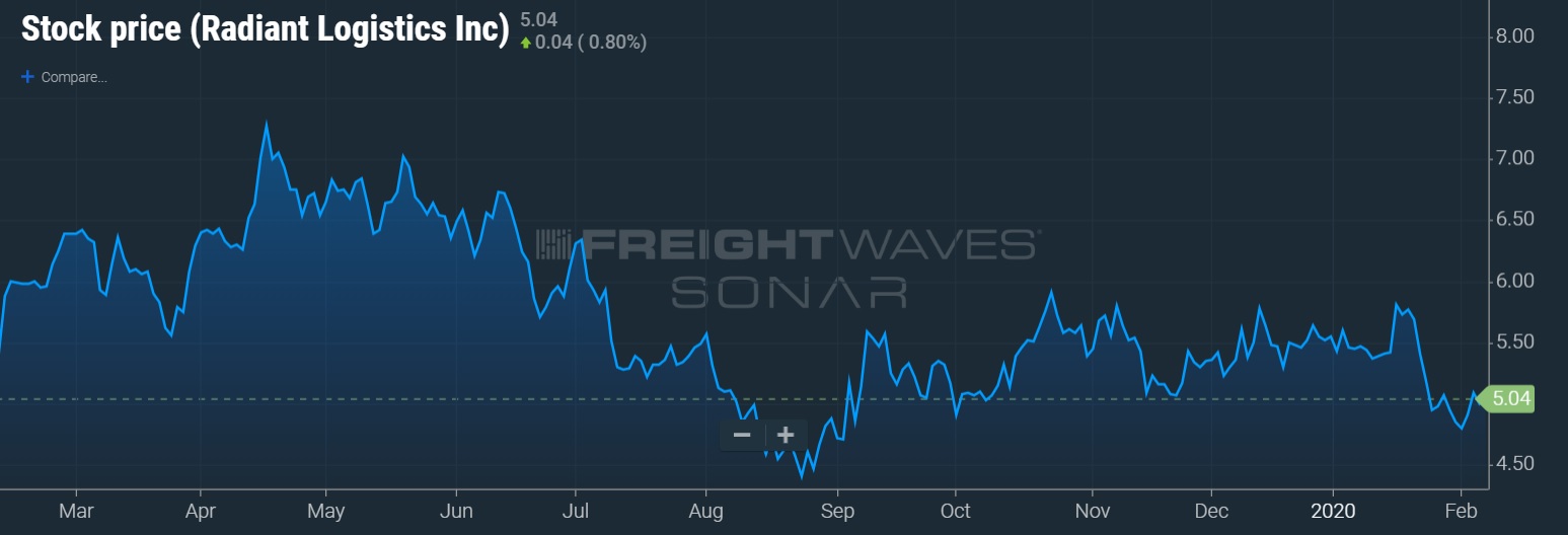 Third-party logistics and multimodal transportation services provider Radiant Logistics Inc. (NYSE: RLGT) sees freight market trends that were positive on a year-over-year basis in December. However, the quarter as a whole came in 25% below the mark set in the year-ago period.