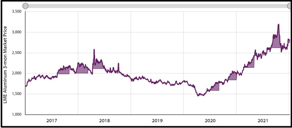 Yet, there are sector concerns not to be ignored, as shown in this first graph, which is an example of just one of the essential modern industrial materials where inflation is playing a critical change supply and demand and price role. This is an example of a MetalMiner Aluminum pricing graph. They circulate it as part of their industrial market message. They also cover a wide variety of other resource materials. This type of data is important, because inflation combined with disruptive market supply pricing will play a role in future rail freight carload traffic and car fleet investment outlooks.