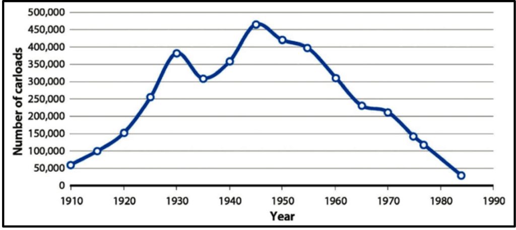Perishable foods and related cold sector commodities still appear to struggle to find their roles as a railroad commodity growth sector, particularly for railroad carload traffic. This specific cold storage and perishable distribution business model is—as a railroad selling and delivery proposition—a broken model. For railroads to regain a carload growth and relevance presence again, something significantly new has to be put into administration and asset utilization place. Its struggling position as a service is not threatened by the pandemic or by the overall economics of our 2022 society. The scale opportunity of rail carload perishables certainly lives. But the execution remains challenged. What is the outlook for cold storage rail freight as a growth segment? Not since after World War II has carload rail perishable service flourished. It’s a niche market with a so-far declining role: