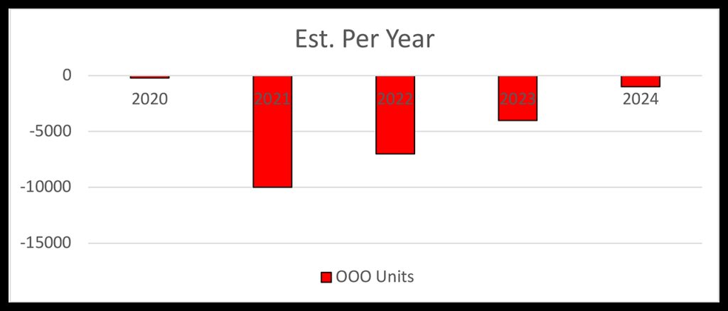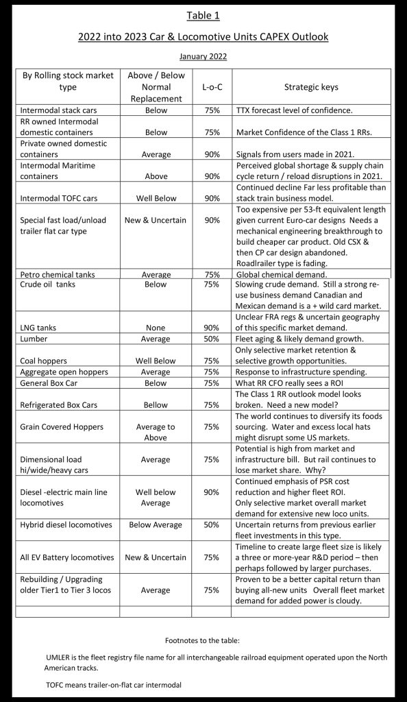 The L-o-C notation in the table is my “level of confidence” in the projected car type forecast. I’m not 100% sure of anything these days. The L-o-C marks this rail economist’s assumed discount factor. The risk factor that matters, is of course, is your own.