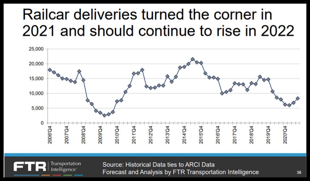 Here is a more optimistic overall outlook for rail freight car manufacturing from the experts at FTR Transportation Intelligence. Todd Tranausky and his colleagues presented their detailed outlook earlier in January 2022, and they see upside: