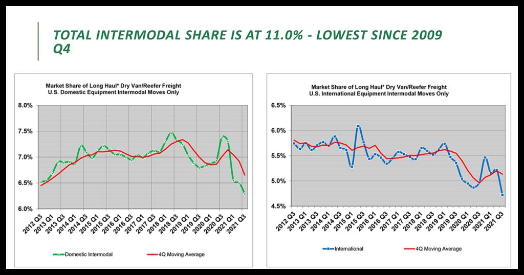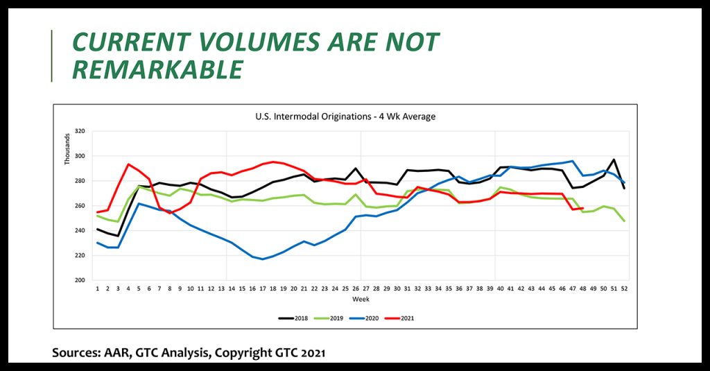 - The crisis period 2020 and 2021 could have been the years when intermodal rail took advantage of trucking problems and filled in the service gaps.