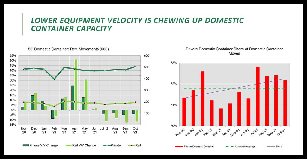 Ron Sucik is one of the foremost intermodal railroad practitioners, with a long career at TTX. Now retired, Ron volunteered some of these market views. Ron will present his final assessment of the 2022 intermodal outlook on March 7 at the Rail Equipment Finance 2022 conference. He expects we will continue to see a shift of more traffic to the East Coast Ports. That shift is going to alter the profitability and volume flows of the western state railroads like Union Pacific and BNSF. There is also going to be more cargo on-port or near-the-port transloading from maritime TEU/FEU(20-foot/40-foot length) containers to 53-foot domestic containers on the West Coast. While there may be sufficient TTX intermodal fleet capacity, the technical issue might be if there are sufficient 53-foot well cars in the fleet, if transloading increases dramatically away from the use of the much-shorter-length stack cars designed for 40-foot boxes.