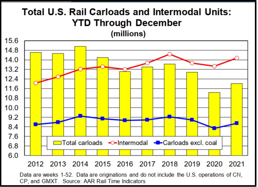 - The momentum for increasing railroad chemical traffic should continue in 2022.