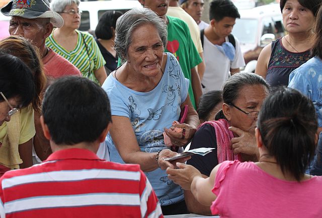 Senior citizens in Barangay Basak San Nocolas receive their cash aid from City Hall in this August 2016 photo. | CDN File photo