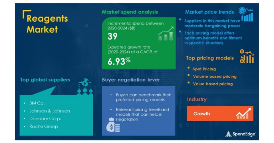 LONDON–(BUSINESS WIRE)–SpendEdge forecast the global Reagents market is expected to grow by USD 39 billion as we reach 2024. This is due to the impact of the COVID-19 pandemic in the first half of 2020. However, a healthy growth is expected to continue throughout the forecast period, and the market is expected to grow at a CAGR of 6.93%.