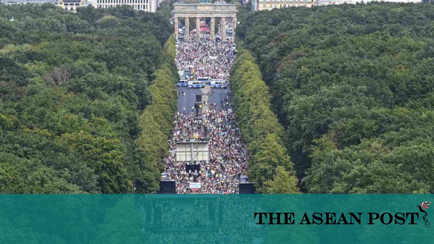 “We are the second wave,” shouted some, as marchers headed for the Brandenburg Gate while others called for “resistance”, dubbing the pandemic “the biggest conspiracy theory”.