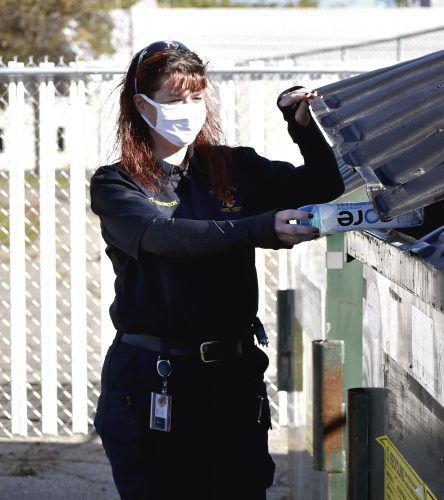 When the recycling receptacles get filled with enough trash, it can contaminate the entire load, negating the efforts of others who use the dumpsters appropriately — to responsibly dispose of bottles, cans, paper, cardboard and plastic. There are signs on the recycling dumpsters spelling out what can be disposed of in the containers, and larger signs are expected to be installed soon. The different recyclable materials can be mixed in the dumpsters because recycling processing centers sort the material with lasers, magnets and other methods in a single stream, Jones said.