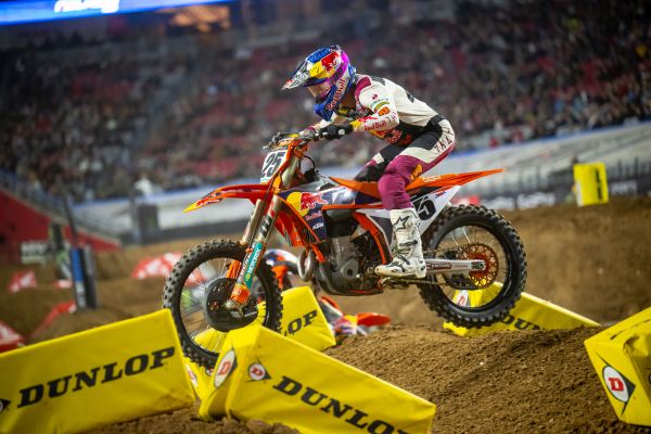 It was a challenging night for defending 450SX Champion Cooper Webb, who finished just behind his teammate Musquin in eighth overall. In the first Main Event, Webb got off to a seventh-place start and he diced back-and-forth between sixth and seventh for the first half of the race. He got passed with about five laps to go and he fought hard to ultimately finish eighth in race one.