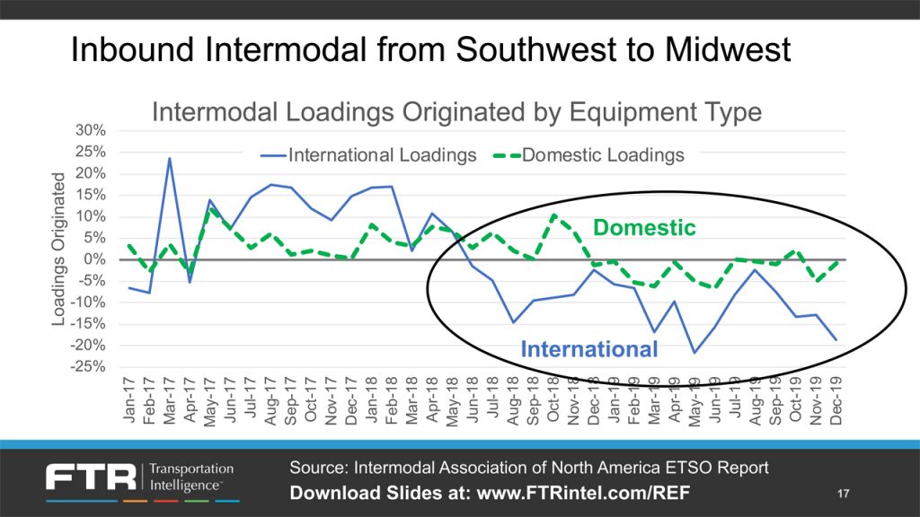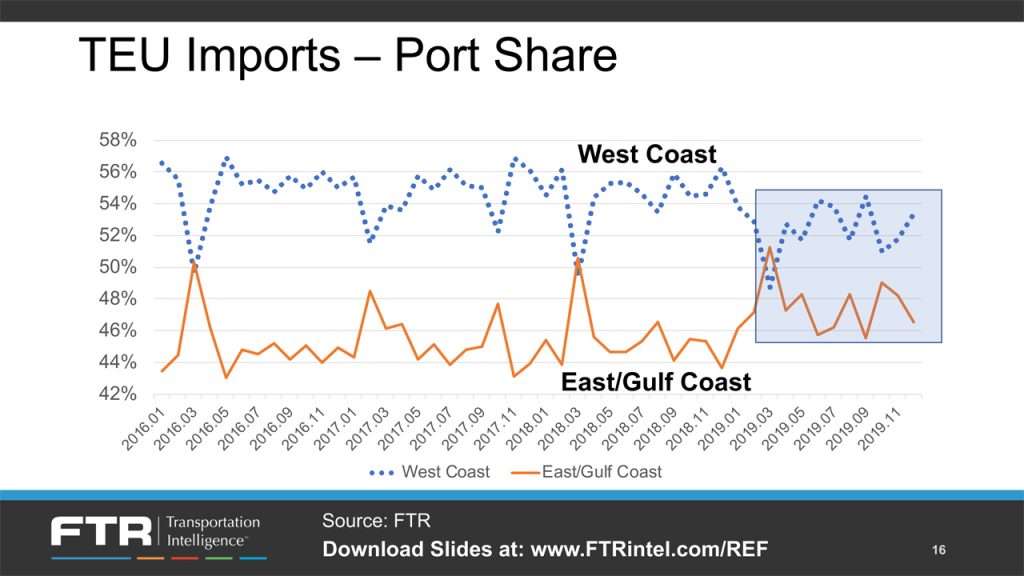 East and Gulf Coast ports. This is having a noticeable impact on rail