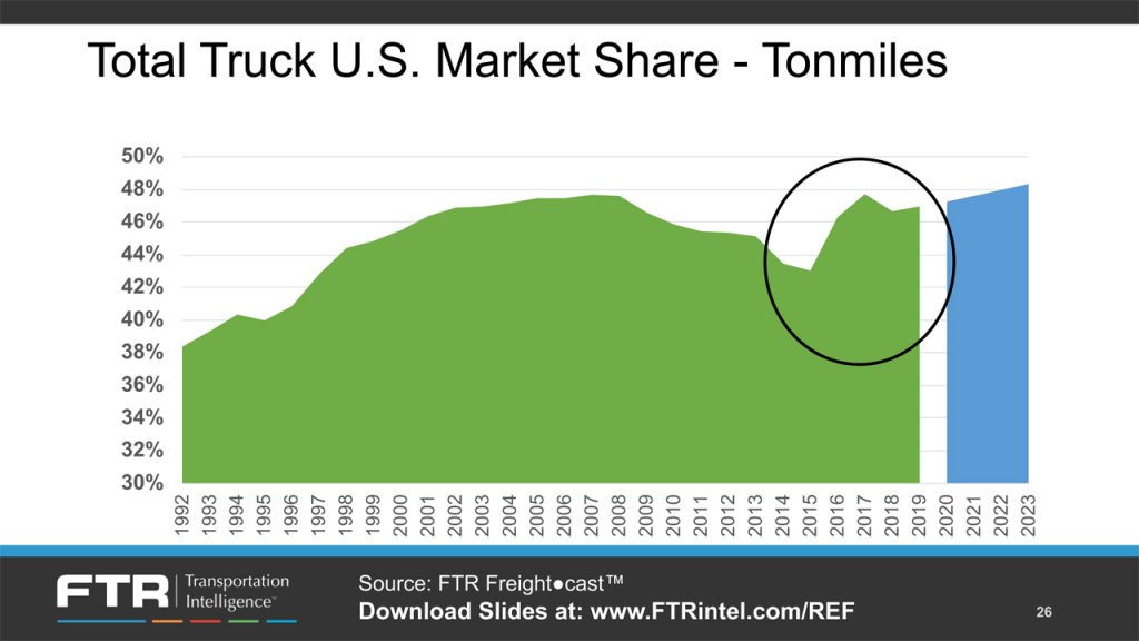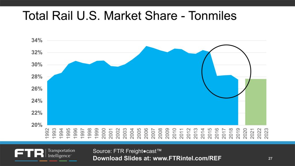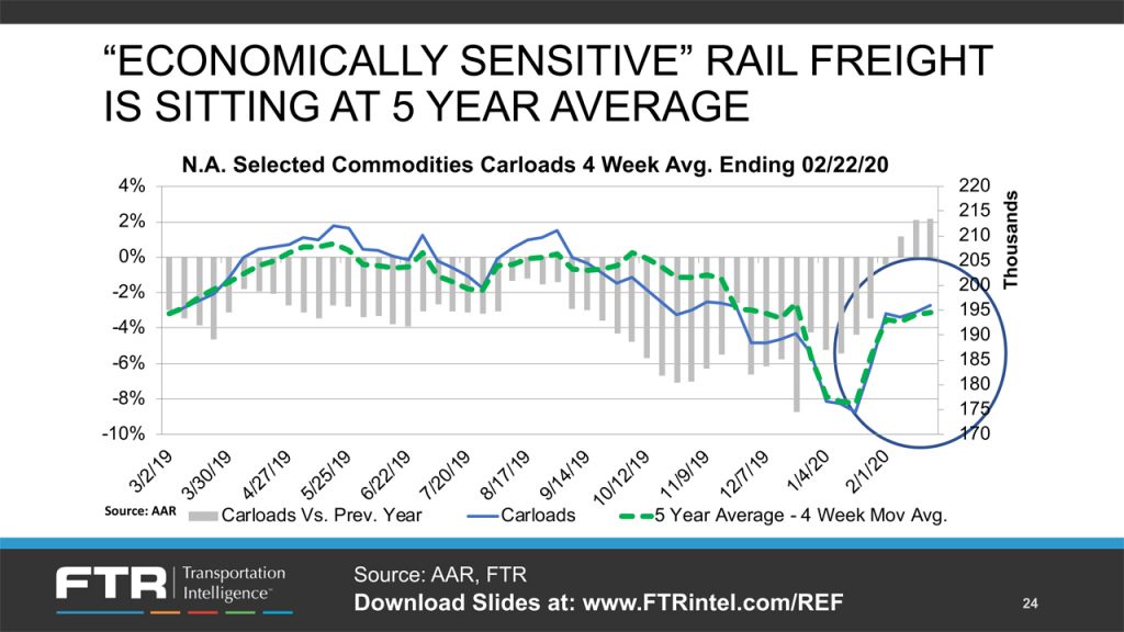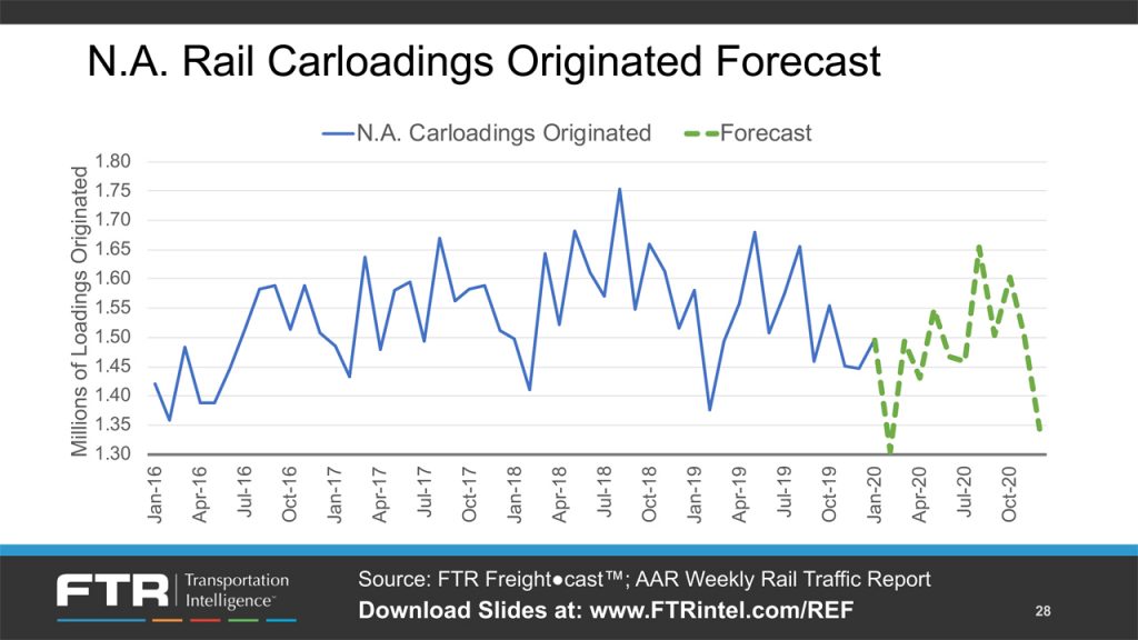 RAILWAY AGE AT REF 2020, LA QUINTA, CALIFORNIA: FTR Associates President and CEO Eric Starks provided his usual high-energy observations on the global supply chain, the uncertainties of the current market and their implications for the North American rail industry. Following are key takeaways from Starks’ presentation on the near-term future for loadings, railroad growth and car demand.
