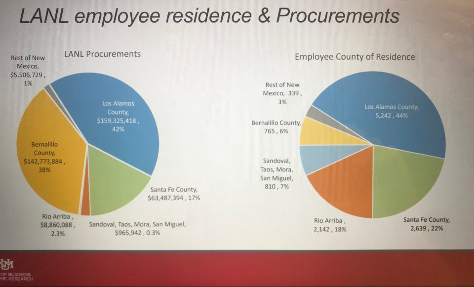Half of LANL’s $752.5 million annual procurement or purchase of goods and services left New Mexico and the other half mostly went to Los Alamos, Bernalillo and Santa Fe Counties.