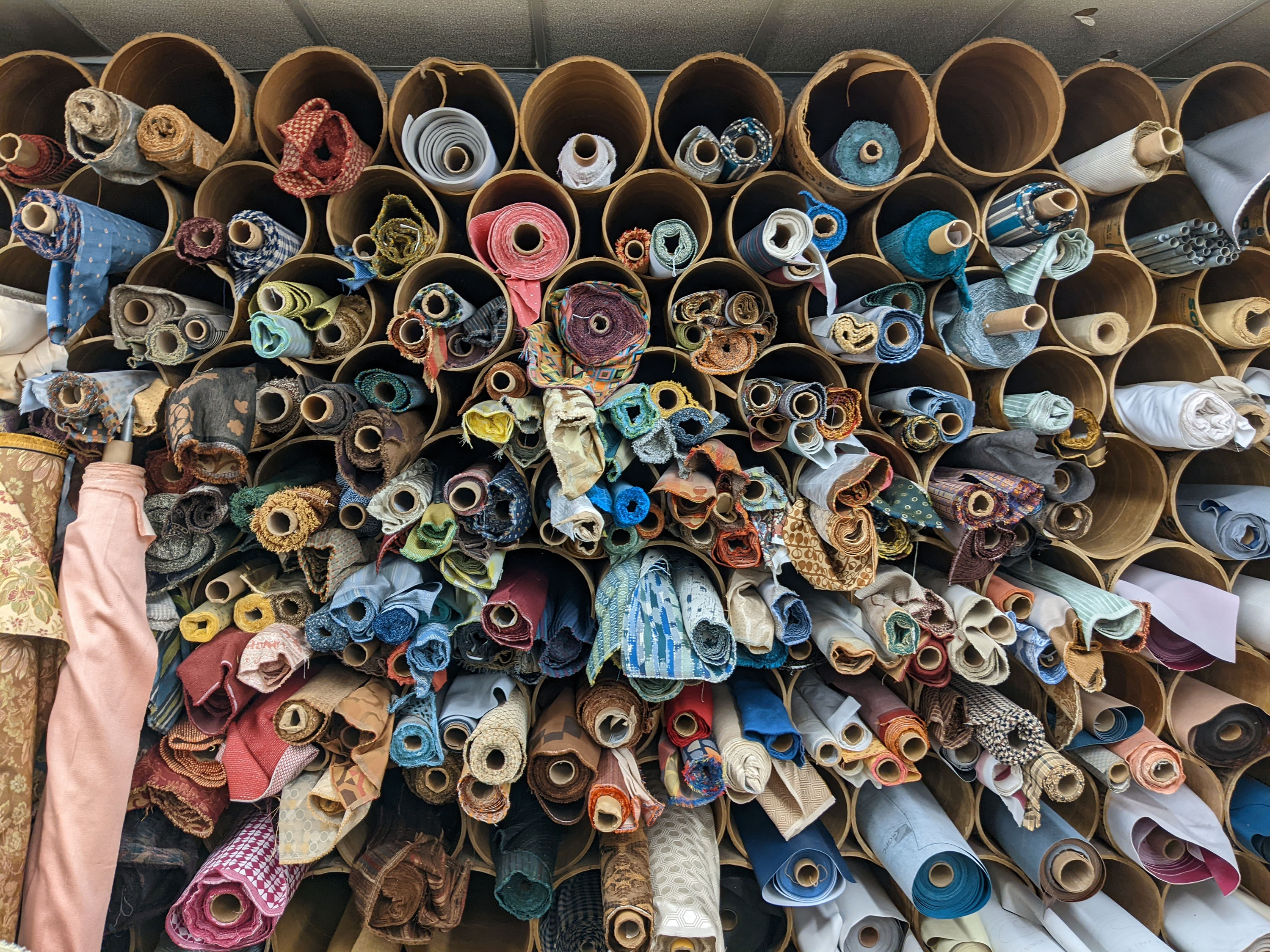For those unaware, remnant fabric is not just scraps and bits left over. When an upholstery company makes a line of couches, furniture, pillows, etc. they are often left, after that run of production, with large bolts of remaining fabric for which they have no use. Oftentimes this is high-end, designer fabric. Wholesaler distributors then buy up these leftover bolts. Pentz has a number of close friendships with these wholesalers and she and her husband (who is 83 years old) make regular road trips down south or to New York to these distributors to pick up new fabric, as shipping such heavy materials is too expensive and would effect Pentz’s ability to continue to sell these fabrics, even those designer fabrics that usually sell at retail for hundreds of dollars, at $9.95 a yard, just like her father did some 60 years ago in the same building at 306 E. 11th St.