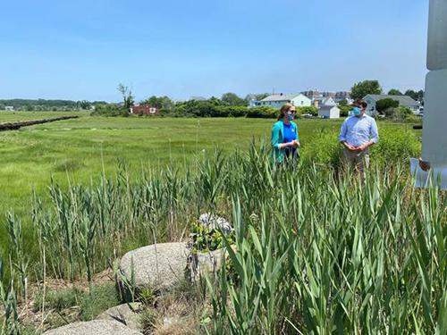 RYE — Congressman Chris Pappas toured coastal infrastructure last Thursday and learned about an initiative to guard against future flood events.