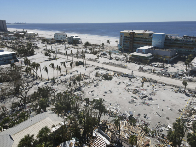 In this photo taken with a drone Sept. 30, debris and damaged buildings are seen two days after the passage of Hurricane Ian, in Fort Myers Beach, Fla. Associated Press file