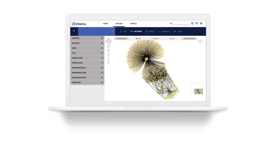 Interos’ risk assessment and monitoring capabilities span over 50 million entities and mine 85,000+ data sources. Interos’ platform leverages machine learning and AI, to build a contiguous map of business connections, and natural language understanding (NLU) to map out a company’s supply chains, business relationships and ecosystems. The result is a picture of a company’s entire ecosystem from end to end, with scoring across five key risk pillars, that are monitored and updated continuously.