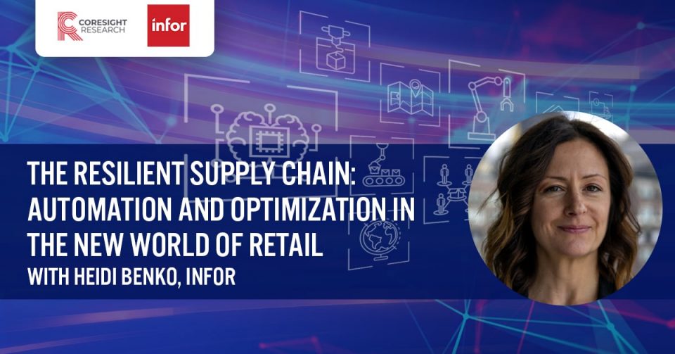 On September 23, 2020, Coresight Research hosted Heidi Benko, VP Solutions Strategy for Supply Chain Management at Infor, to discuss the importance of a resilient supply chain and the need for end-to-end data sharing and visibility for retailers and suppliers.