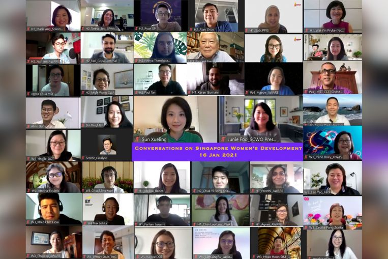 Ms Sun, who was taking part in Saturday’s dialogue, organised by the Singapore Council of Women’s Organisations and held via video-conferencing, said: “I am happy to see increasing participation from our men. Your views and suggestions are very important, because the aspirations of Singapore women can best be realised when it is a whole of society commitment.”