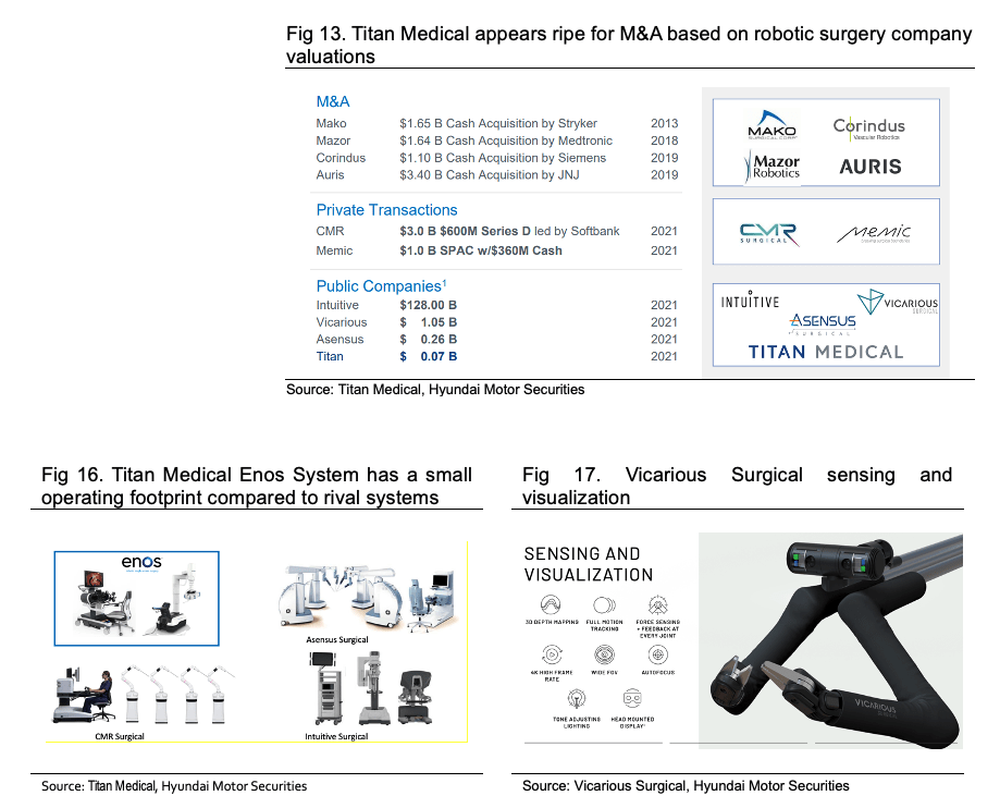 For the medical/surgical robotics companies, investors should monitor the state of the approval process and use cases for their solutions. In addition, it is important to monitor industry leaders such as Intuitive Surgical (ISRG) to see if they can deploy a viable competing product or if there