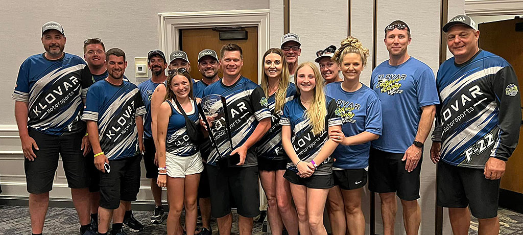 The KLOVAR Motorsports crew was all smiles after winning the first 450R Factory Stock class race of 2022. Photo courtesy Randy Keys