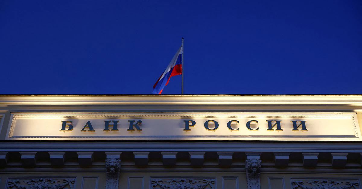 A Russian state flag flies over the Central Bank headquarters in Moscow, Russia March 29, 2021. REUTERS/Maxim Shemetov/File Photo