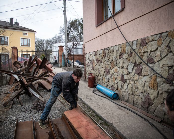 A man in Lviv, Ukraine, welding antitank road blocks to send to Kyiv.