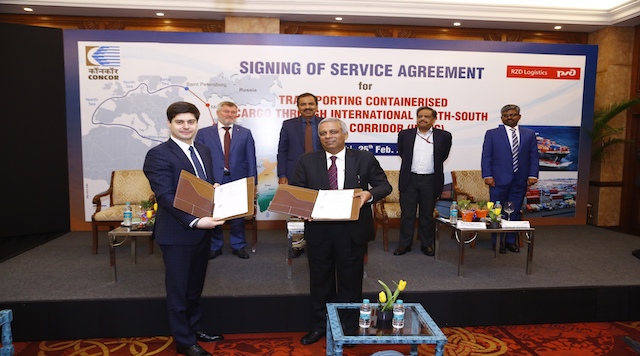 CONCOR Dmitry Murev, CEO of RZD Logistics, and Sanjay Swarup, Director (International Marketing and Operations) of CONCOR, signed the corresponding document at a ceremony in the New Delhi. In addition to providing containers for use at the North-South international transport corridor, CONCOR will organize local logistics services in India, as well as provide sea freight. RZD Logistics, in turn, will be responsible for organizing freight handling at the multimodal transfer points and container transportation by rail.