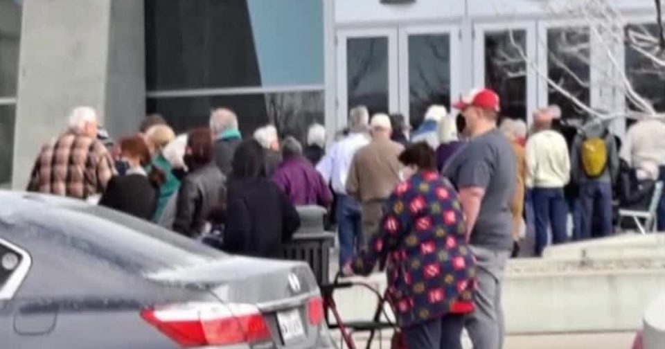Pictures show a line of people 70 years and older out the door of the vaccination center. Inside, video shows a slow-moving line as people waited for hours.