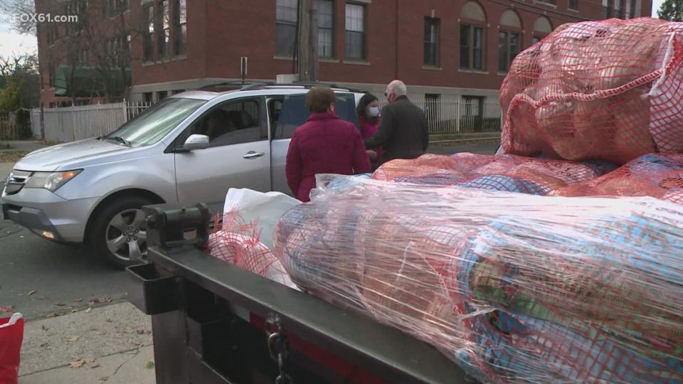 The event has become an annual tradition put on by the Salvation Army of Connecticut and Rhode Island. Captain Shareena Echavarria from the Salvation Army was busy helping to load up cars and trucks with all the goods, helping the families looking for a Thanksgiving meal.