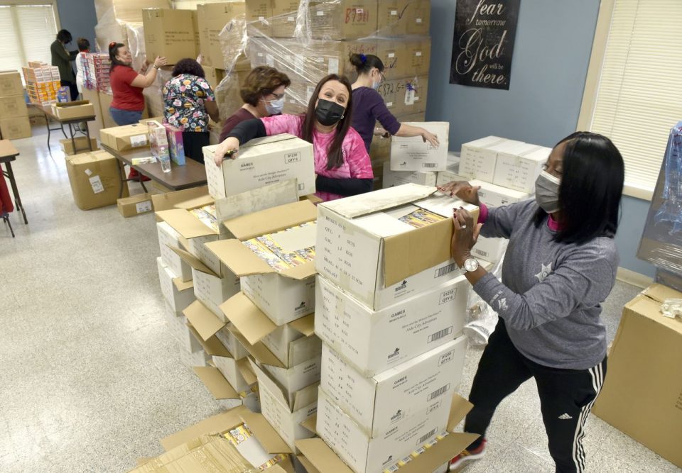 Nearly 15 volunteers from the Sheriff’s Department began helping with preparations last week, as toys were unloaded and preparation begun for contactless delivery.
