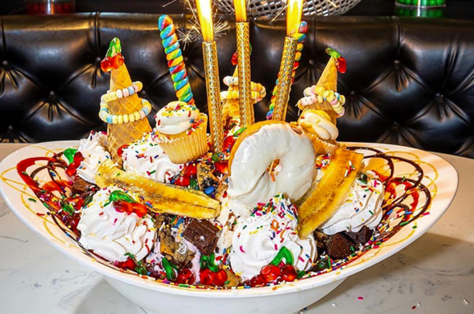 However, none are as cavity-inducing as the King Kong Sundae. The massive dessert contains 24 scoops of ice cream, a whole can of whipped cream, walnuts, cakes, sprinkles, M&M’s, four waffle cones, three unicorn lollipops, pretzels and an array of candies. The concoction costs a cool $99 and serves a dozen people.