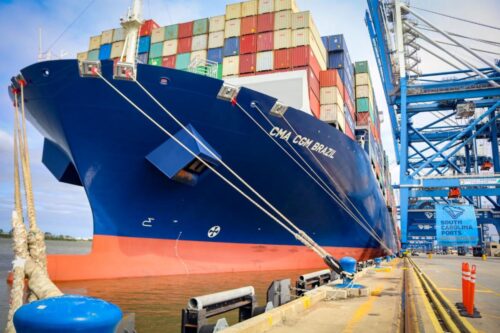 “We are very excited to welcome the 15,072-TEU CMA CGM Brazil to SC Ports. Our efficient operations and modern ship-to-shore cranes ensure we can efficiently work vessels of this size,” SC Ports COO Barbara Melvin said. “Our SC Ports team and the broader maritime community take great pride in the vital work of keeping freight moving.”