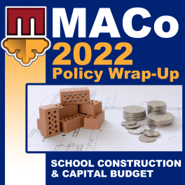 The segments below provide a brief overview of MACo’s work in the area of school construction in the 2022 General Assembly.