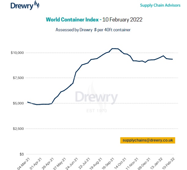 Drewry’s composite World Container Index decreased marginally to $9,359.10/40ft container this week.