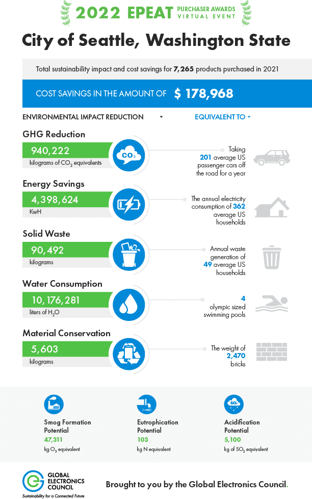 On July 28, a virtual ceremony honoured the City of Seattle for its dedication to sustainable IT procurement.