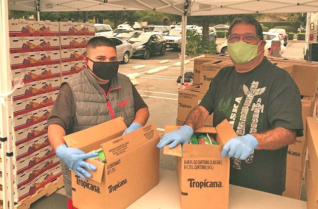 On distribution days, groceries are placed either in trunks or backseats of vehicles by masked and gloved volunteers. Since March the Mobile Fresh program has given away more than 52,000 pounds of food in Riverbank with each grocery bag averaging about 35 pounds. Programs like Mobile Fresh are made possible by grant funding through organizations like Nourishing Neighbors and corporate partners like Starbucks, SaveMart, and General Mills.