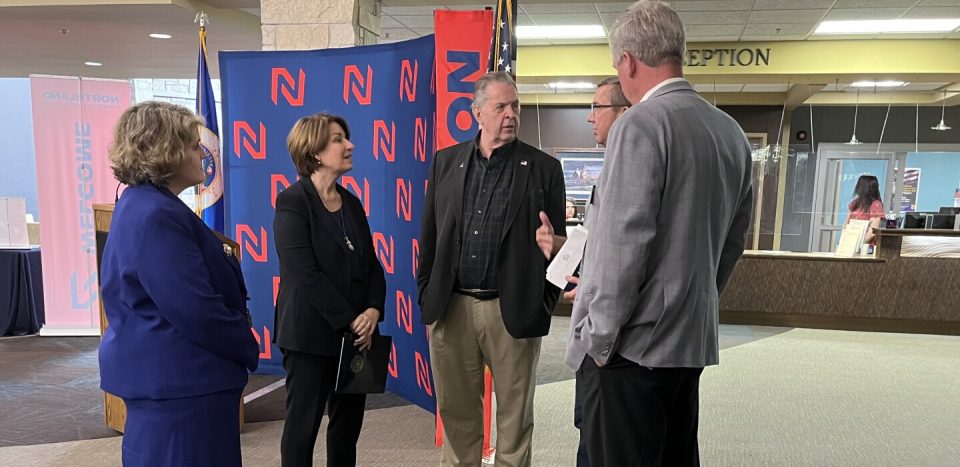 EAST GRAND FORKS, Minn. — U.S. Sen. Amy Klobuchar, D-Minn., met with agricultural leaders at Northland Community and Technical College in East Grand Forks on Tuesday, June 28, to talk about how the recently signed Ocean Shipping Reform Act will benefit agricultural producers in northwestern Minnesota. The law, signed by President Joe Biden on June 16, aims to ease supply chain issues and shipping backlogs.