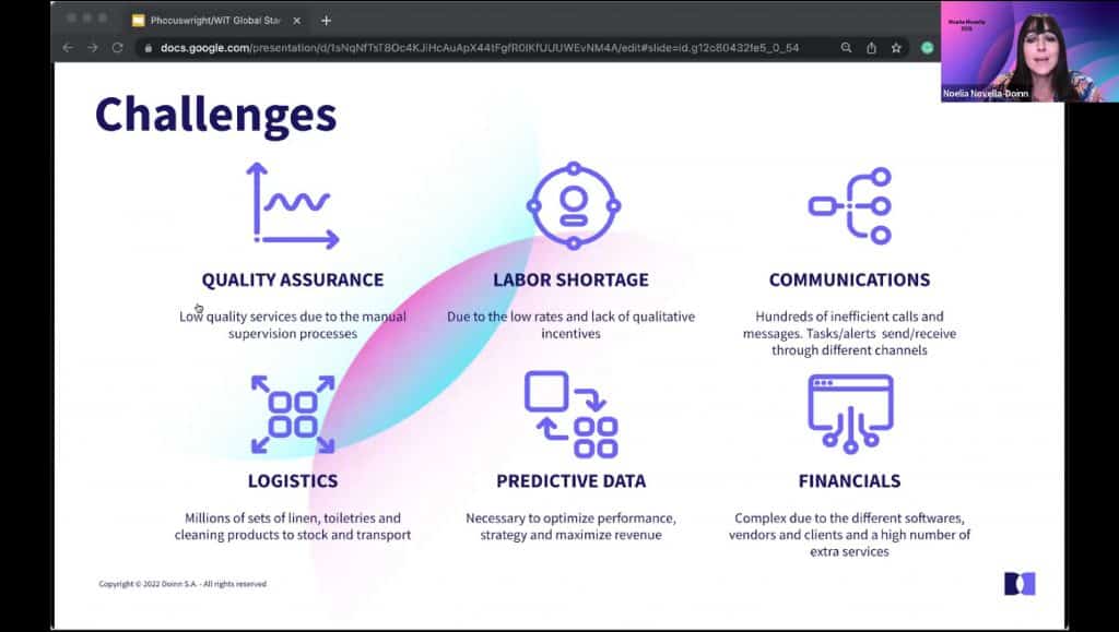 Noelia Novella, co-founder and CEO, Doinn, sharing the pain points her startup which provides cleaning services to short-term rentals is addressing.