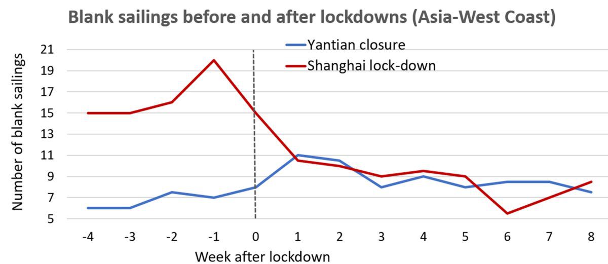 “Even though the level of blank sailings right now basically matches the number seen in 2021 following the Yantian [shutdown], it cannot be concluded that the impact on the market is the same.