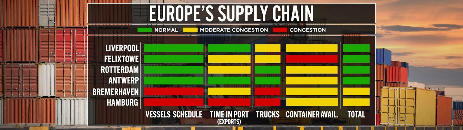 The Port of Hamburg is already congested with containers. So much so, the railroad cannot move in any export containers.