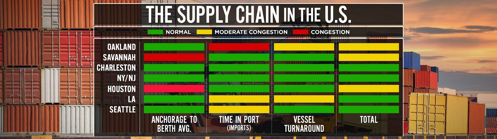Unfortunately, the volume of containers is creating congestion. To keep up with growing container volume, the Port of Houston recently announced gate hours on Saturdays for the rest of the year. The Port of Savannah is using its pop-up container storage lots to free up land capacity.