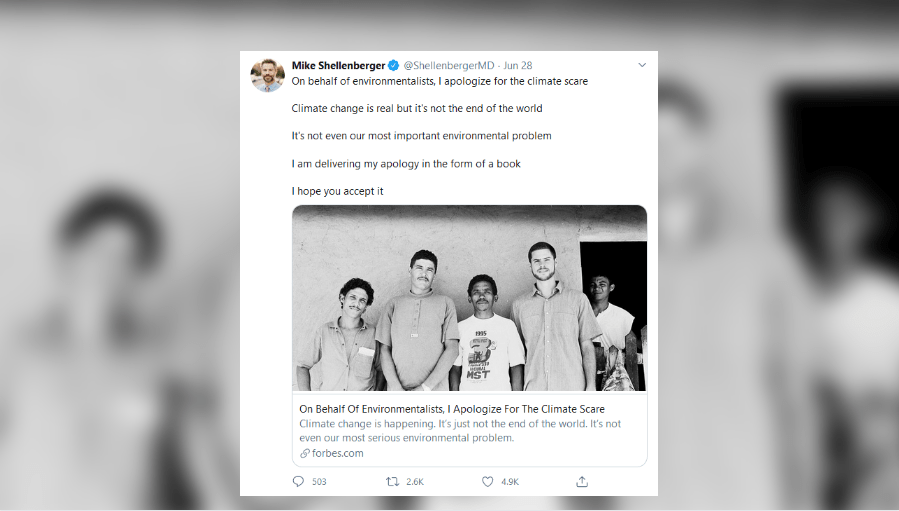 On June 28, 2020, environmental activist and nuclear energy advocate Michael Shellenberger published an article in the business magazine Forbes titled “On Behalf Of Environmentalists, I Apologize For The Climate Scare.” In it, Shellenberger proffered a list of 12 “facts few people know” that “will sound like ‘climate denialism’ to many people.” A day later, Forbes removed the article, which teased his new book “Apocalypse Never: Why Environmental Alarmism Hurts Us All.”