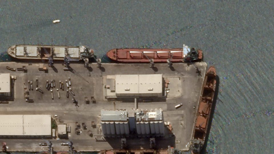Satellite imagery from Planet Labs PBC showed it at the Tartus port on Tuesday morning. A shipping source confirmed it had docked there and said it was unloading at least part of its cargo of corn in Syria.