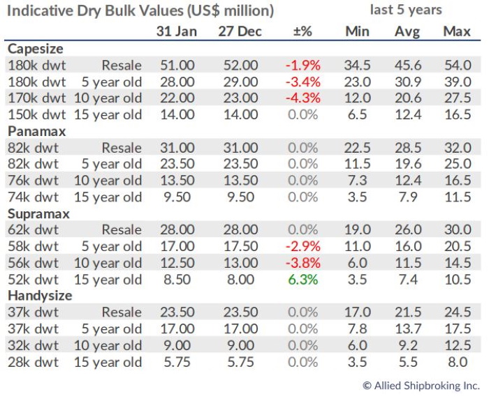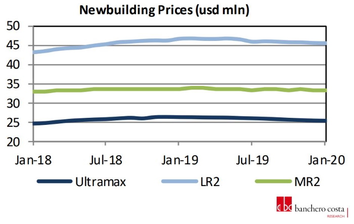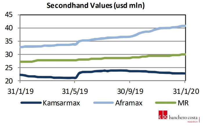 The combination of a slump in freight rates, but also a general lack of activity due to the Coronavirus has limited ship owners’ appetite for deals in the market, most notably in the newbuilding segment, but also in the S&P market. In its latest weekly report, shipbroker Banchero Costa said that “in the dry market, three Capesize units were reported sold during the week. The modern “Aqua Vision” 180,000 dwt built in 2011 at Dalian was sold for $20 mln, back in December the “Gotia” 180,000 dwt built in 2012 at SWS was done for $ 23mln. Two other vessels were reported: “Aquajoy” 171,000 dwt built in 2003 at Sasebo was sold for $ 11.3 mln and “Norfolk” 164,000 dwt built in 2002 at CSBC was reported sold for $9.5 mln. Concerning PostPanamax, “Ocean Garnet” 93,000 dwt built in 2010 by COSCO Dalian was sold at $11 mln and “Ocean Sapphire” 93,000 dwt built in 2012 by COSCO Dalian was sold by the same owner at $13 mln. In the Supramax segment a Japanese controlled unit “Triton Valk” 56,000 dwt built in 2009 by Mitsui was inviting for offers last week, it now seems the vessel is sold to Greek buyers for $ 11.1 mln. In the Handysize segment, a Norwegian controlled unit “Fantohlmen” 32,000 dwt built in 2010 at Jiangsu Zhenjiang was sold for $ 5.8 mln to Chinese buyers (SS/DD due in August 2020). In the tanker market, the Suezmax “Filikon” 150,000 dwt built in 2002 at Universal was sold for 20.8 mln. At the end of 2019 “Iskmati Spirit” 165,000 dwt built in 2003 by Hyundai Samho was sold for $ 19.3 mln. In the product market, two modern MR tankers “Eco Holmby Hills” and “Eco Palm Desert” 50,000 dwt built in 2018 by Hyundai Vinashin were reported sold for $35 mln each to JP Morgan including five years TC back to Clearlake”, Banchero Costa said.