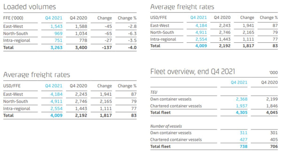 The proportion of Maersk’s long-haul volumes covered by long-term contracts jumped from 50% in 2020 to 65% in 2021. This year, the share will rise to 70%, or over 7 million forty-foot equivalent units.
