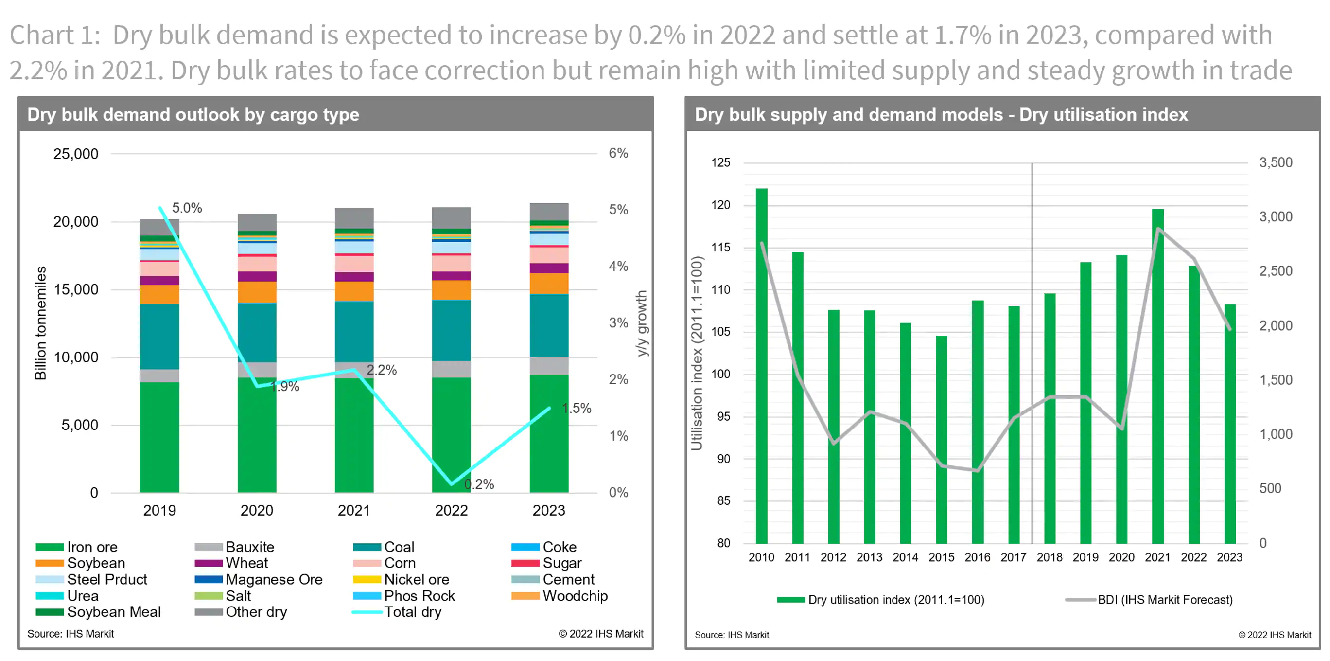 while dry bulk fleet growth will slow to 2.8% in 2022, 2.2% in