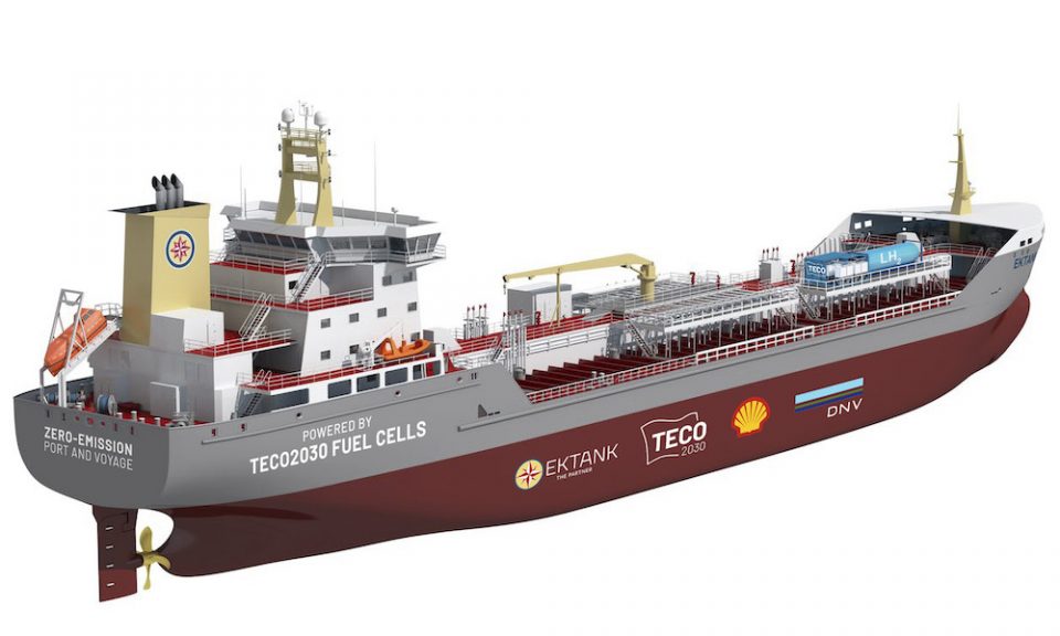 Norwegian fuel cell developer TECO 2030 launched yesterday a hydrogen-powered tanker concept, Hy-Ekotank, together with partners Ektank, Shell Shipping and Maritime, and class society DNV. The key part of the announcement is that the design is potentially available for retrofits of today’s fleet.