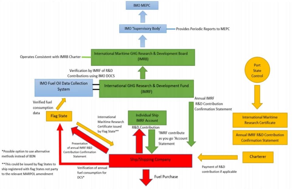 Proceeds from the $2 per ton tax would go to a new entity called the International Maritime Research Fund (IMRF), with R&D spending coordinated by another new body, the International Maritime Research and Development Board (IMRB).