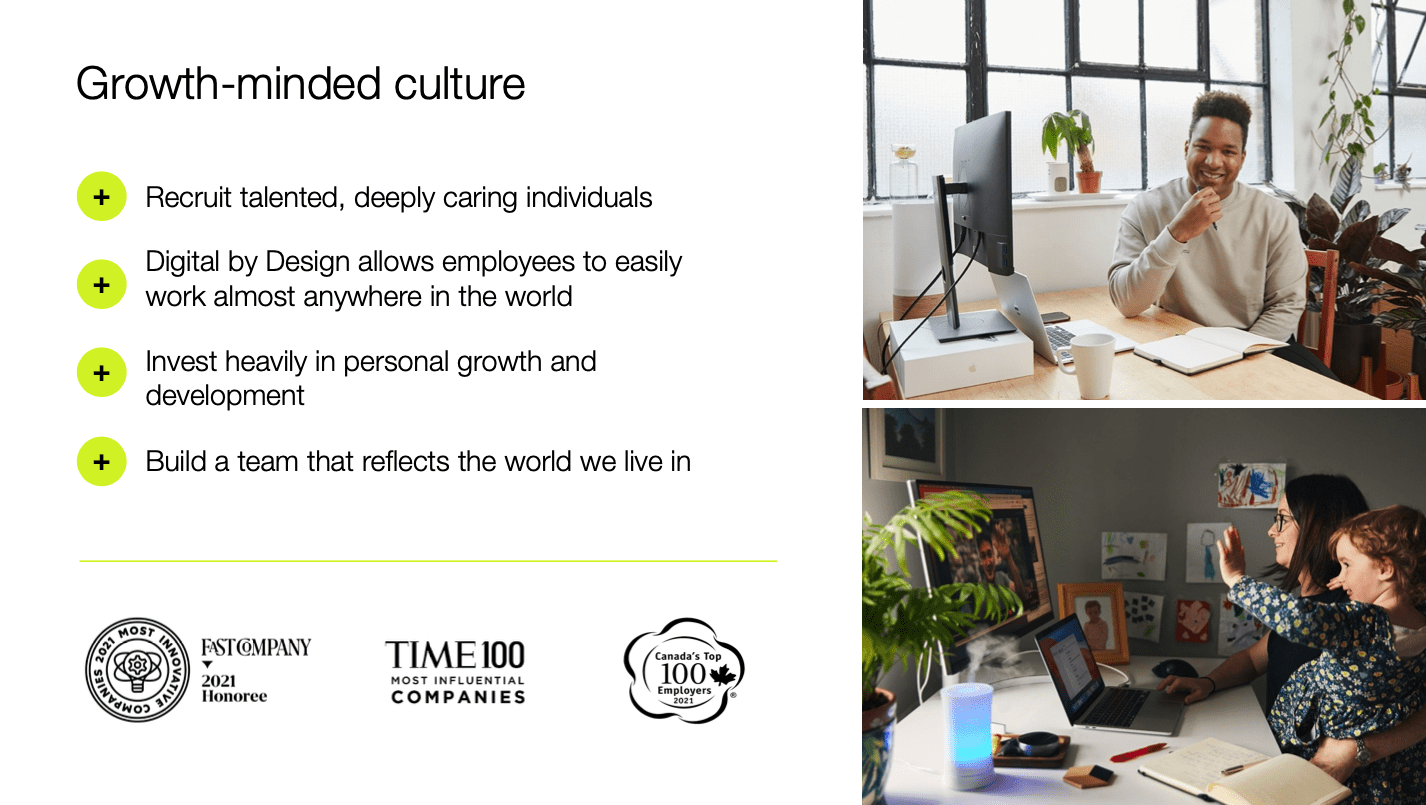This mission statement is simple, focused, and is something that employees can understand and get behind. The other thing their mission statement creates is the expectation for merchants if they build their business on the Shopify platform, they can focus on what is important and they will be successful. Tobi and Harley have helped build this company around this mission and have been executing to it since going IPO in 2015. Having a well-thought-out company vision and mission statement that aligns to that vision, matters for success. Employees find meaning in their work when they can understand how their work contributes to the larger goal or mission statement. It leads to improved employee retention, productivity, sustainable talent growth within the organization, and attracts new talent.