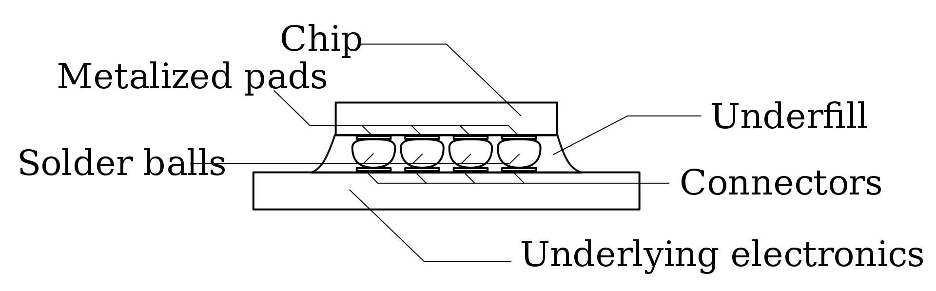 Fig. 3: Side-view a flip-chip mounting. Source: Wikipedia